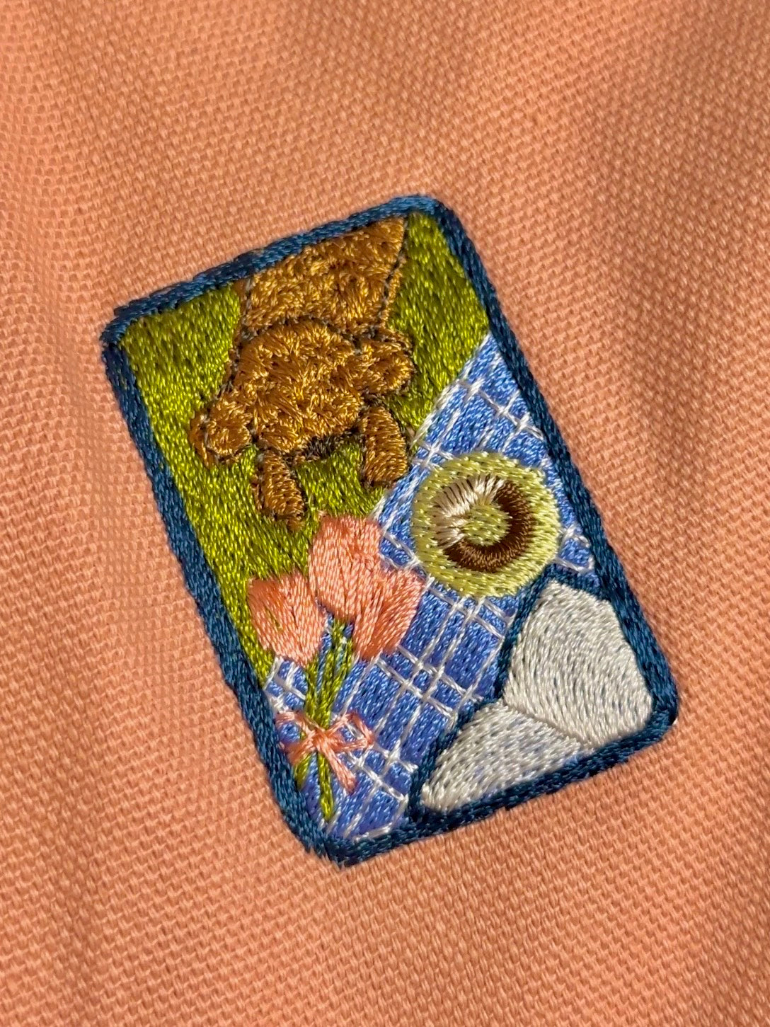構図は飼い主目線をそのまま刺繍にした形です。